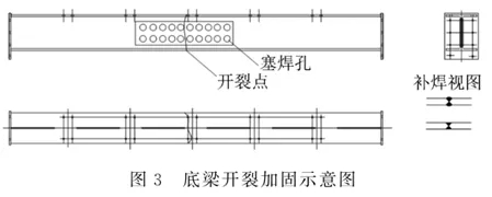 底梁主要在中間部位容易開裂,采用打坡口、焊接平,再加副板的方法解決,通過塞焊和斷續(xù)焊接把副板和底梁固定在一起,能達(dá)到預(yù)期目的,延長(zhǎng)使用壽命。
