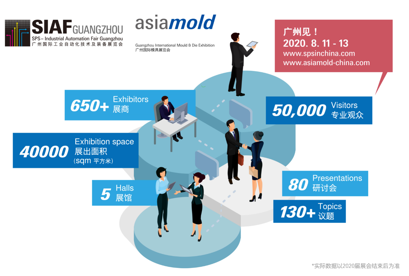 2020年8月11至13日,SIAF廣州國際工業(yè)自動化技術(shù)及裝備展覽會及同期Asiamold廣州國際模具展覽會將在廣州中國進(jìn)出口商品交易會展館盛大舉行。作為德國紐倫堡SPS智能生產(chǎn)解決方案展覽會的姊妹展,SIAF是華南地區(qū)智能工業(yè)自動化解決方案的重要平臺,而Asiamold則涵蓋了前沿的模具制造、3D打印、激光制造、壓鑄、軸承及金屬加工技術(shù)。兩展同屬智能制造領(lǐng)域,參展企業(yè)合計(jì)超過650家,展館的規(guī)模達(dá)40,000平方米,預(yù)計(jì)吸引超過50,000名專業(yè)觀眾前來參觀。展會現(xiàn)場將呈現(xiàn)超過130個議題, 分享工業(yè)自動化、模具制造和3D打印行業(yè)最新資訊,聚焦探討技術(shù)成果。