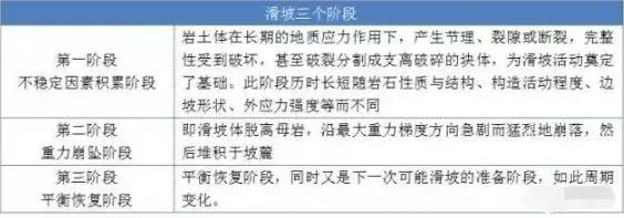 邊坡滑坡活動是在多種應力作用下,巖體從變形最終演變?yōu)楸缆涞默F(xiàn)象,整個過程可分為三個階段: