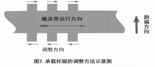 根據(jù)上述分析,若輸送帶在輸送機(jī)中部出現(xiàn)跑偏時(shí)的調(diào)整方法:
