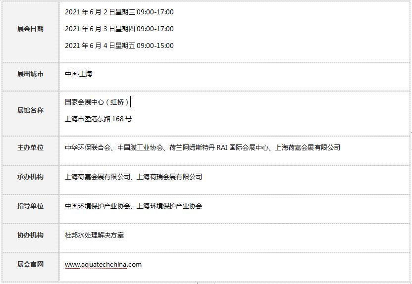 上海國際水處理展覽會AQUATECH CHINA 2021觀眾參觀邀請函!