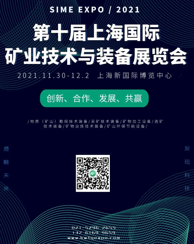 為了助力新時(shí)期礦山行業(yè)健康持續(xù)發(fā)展,加快推動(dòng)新產(chǎn)品、新技術(shù)、新裝備廣泛應(yīng)用。2021上海國(guó)際礦業(yè)展覽會(huì),將于2021年11月30-12月2日在上海新國(guó)際博覽中心舉行。屆時(shí)邀請(qǐng)政府領(lǐng)導(dǎo)、專家學(xué)者、企業(yè)高管、協(xié)會(huì)領(lǐng)導(dǎo)等一道解析行業(yè)發(fā)展形勢(shì),挖掘新動(dòng)能,探尋發(fā)展思路,共同打造“創(chuàng)新、合作、發(fā)展、共贏”的全球礦業(yè)合作平臺(tái)。