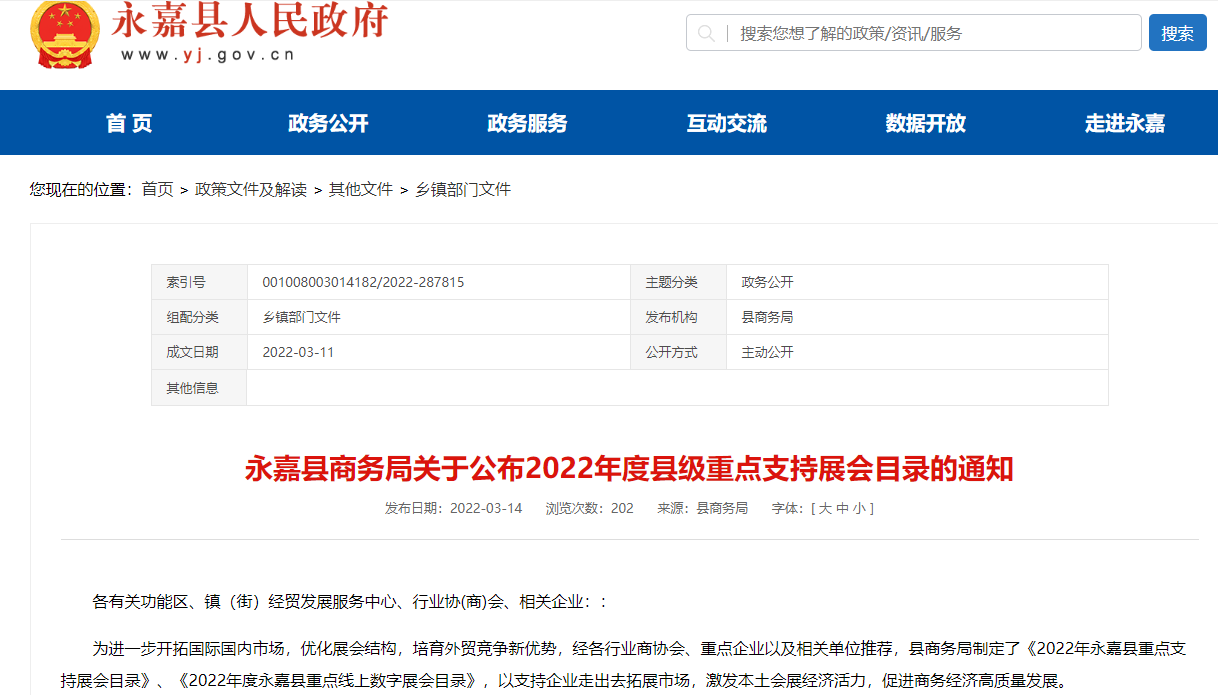 溫州永嘉:出臺(tái)政策,扶持展會(huì)與企業(yè)