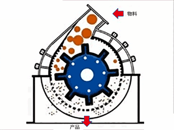 沖擊破碎:沖擊破碎包括高速運動的破碎體對被破碎物料的沖擊和高速運動的物料向適定壁的沖擊以及運動物料的相互沖擊。