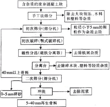圖1俄羅斯典型再生骨料生產(chǎn)工藝