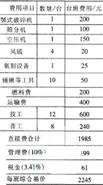 表2再生骨料綜合臺(tái)班基價(jià)分析