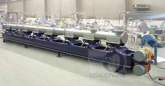 圖4:共振槽式輸送機的組裝線,振動馬達置于頂部。