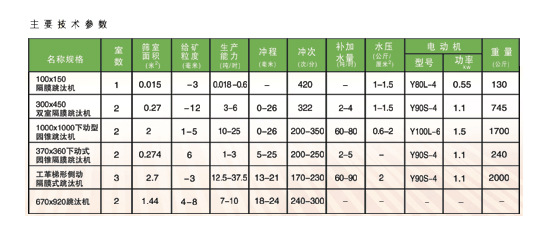 隔膜跳汰機(jī)參數(shù):