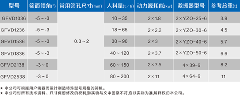 振動(dòng)脫水篩技術(shù)參數(shù) / Technical Parameters