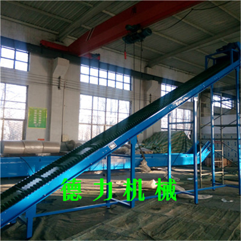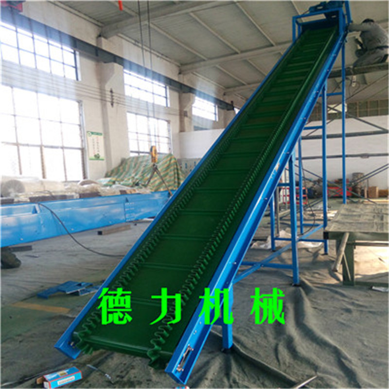 爬坡皮帶輸送機(jī)適用于樓層或高差間的貨物的連續(xù)輸送。傾斜角度小(≤30°)的爬坡皮帶機(jī),在皮帶上加裝檔條、治具、裙邊等方式從而使物體能在較大的角度上作提升輸送。具有效率高、輸送快、噪音低、不間斷等特點(diǎn)。特別適合小物料的輸送,如食品、注塑件、粉末以及各種零件行業(yè)。用于上下樓層、斜坡地形、天橋等具有高差的平面之間的物品輸送。在某些情況下可以代替升降機(jī)使用。在輸送顆粒狀物品時(shí)為防止物品因重力滾落,每隔一段距離可以加一塊擋板.