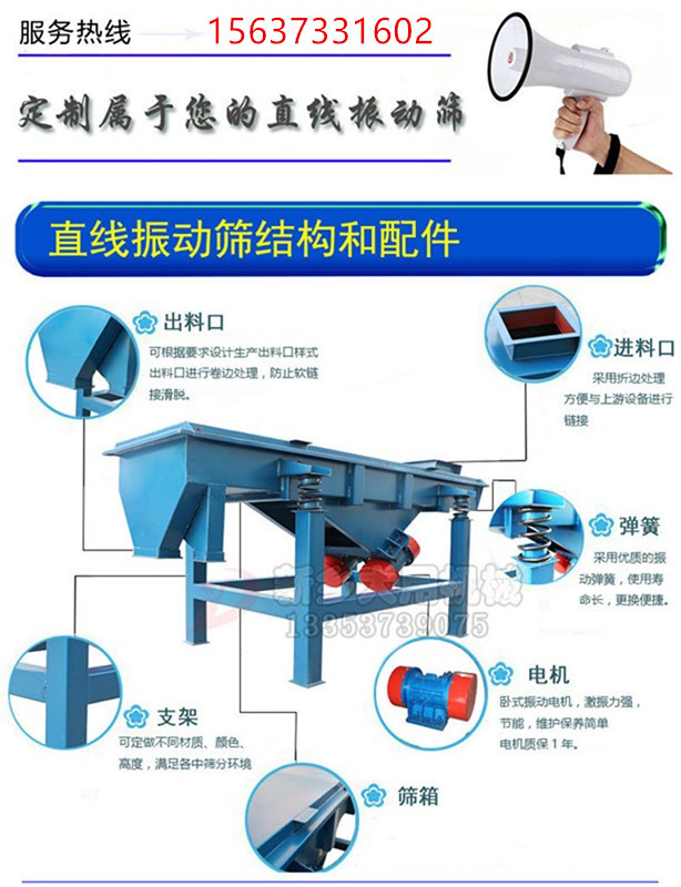 直線振動篩上蓋部位設計除塵口,在和布袋除塵器或者脈沖除塵器配套使用就能達到很好的除塵效果,生產(chǎn)環(huán)境更潔凈,,非常適合粉塵大的設備,直線振動篩型號1030、1035、1040、1235、1236、1240、1530、1535、1540、1860、540等不同直線篩型號可供選 擇,直線振動篩可分為一層、兩層、三層、四層、五層、六層型。根據(jù)篩分物料的具體需求選擇不同層型的振動篩。一層篩網(wǎng)使用多用于篩除雜質、過重過濾,其一層型振動篩也可分出兩個完整的粒級。直線振動篩是一種適合潮濕細粒級難篩物料干法篩分的篩機,篩機篩面有單層、雙層、多層結構形式,對各種顆粒狀和小塊狀散固體物料的干濕式分級,是目前國內(nèi)處理難篩物料的振動篩分機械設備。