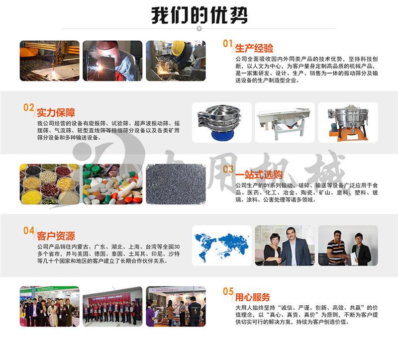 新鄉(xiāng)大用振動設備有限公司針對不同用戶物料特性、處理量、篩分目標、場地限制、生產(chǎn)線配置等不同特點的需要,全力以赴為每一位用戶量身打造適合自己使用的振動篩分設備。