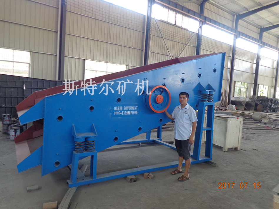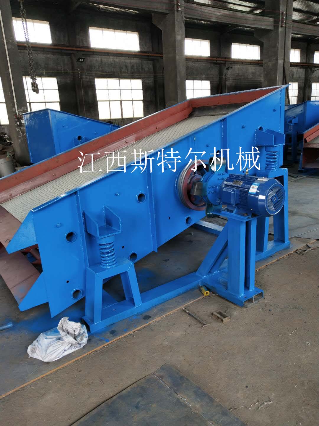 直線振動篩采用振動電機驅(qū)動,當(dāng)振動電機做同步、反向旋轉(zhuǎn)時,其偏心塊所產(chǎn)生的激振力在平行于電機軸線的方向相互抵消,在垂直于電機軸的方向疊為一合力,因此篩機的運動軌跡為一直線。其電機軸相對篩面有一傾角,在激振力和物料自重力的合力作用下,物料在篩面上被拋起跳躍式向前作直線運動,從而達到對物料進行篩選和分級的目的??捎糜诹魉€中實現(xiàn)自動化作業(yè)。具有能耗低、結(jié)構(gòu)簡單、易維修、全封閉結(jié)構(gòu)無粉塵溢散的特點。篩分目數(shù)細100目,可篩分出不同粒度的物料。