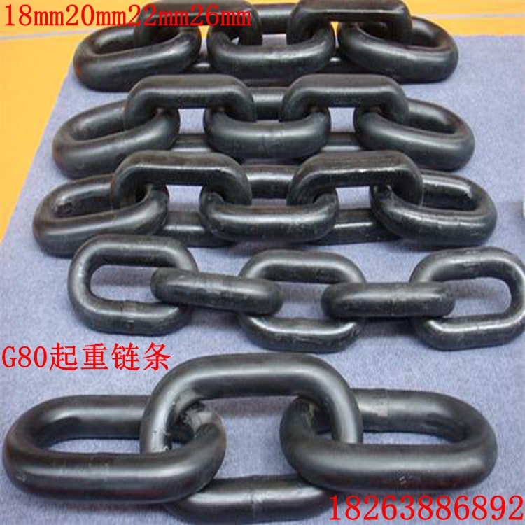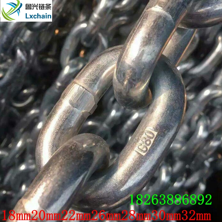 泰安市魯興機(jī)械配件有限公司專業(yè)生產(chǎn)提供6mm、6.3mm、7.1mm、8mm、10mm、12mm、13mm、14mm、16mm、18mm、20mm、22mm、24mm、26mm、30mm等80級(jí)起重鏈條,并可以定做各種非標(biāo)鏈條,鍍鋅、發(fā)黑、防腐鏈條。