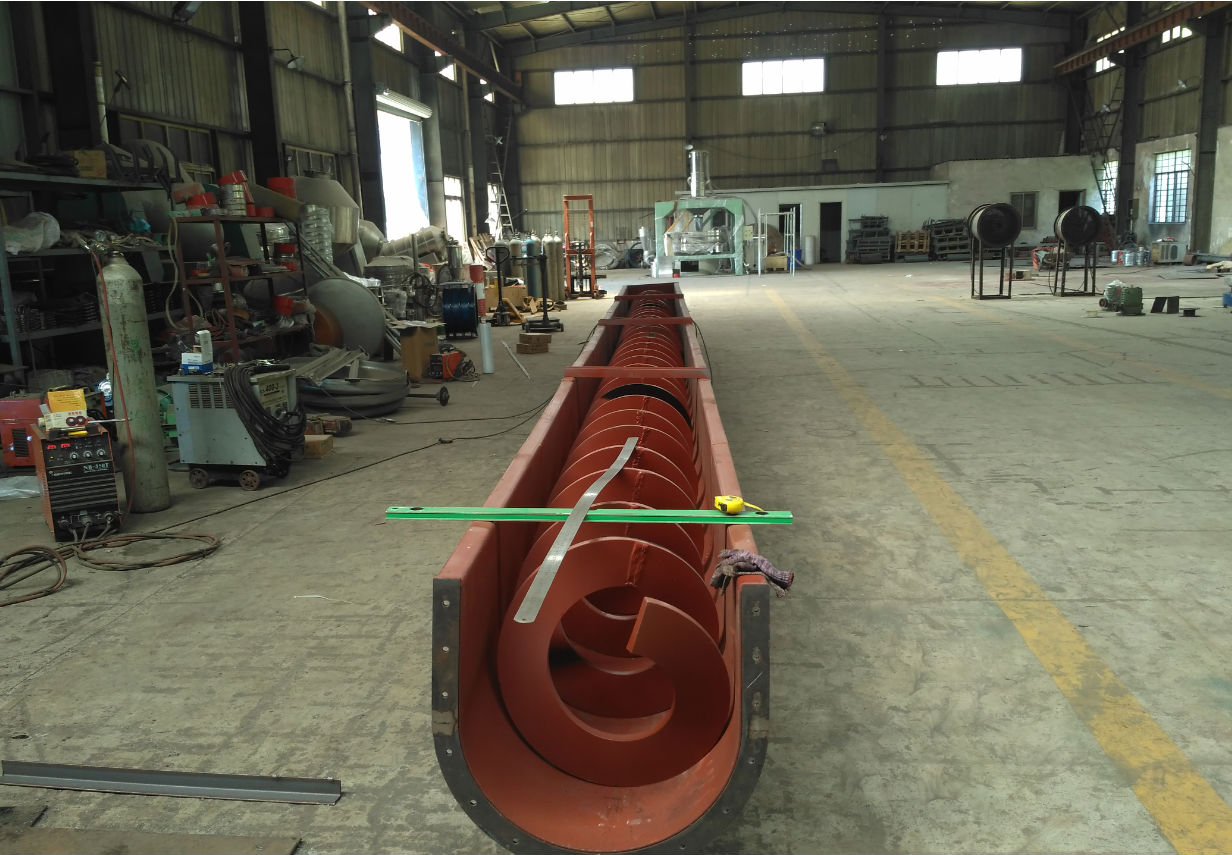 螺旋輸送機用于傳輸工業(yè)生產(chǎn)過程中產(chǎn)生的各種廢物及濾渣、城市給排水中格柵輸出柵渣,污泥脫水輸送泥餅等物料。螺旋輸送機一般分為有軸、無軸兩種,有軸螺旋輸送機由螺桿、U型槽蓋板、進、出料口和驅(qū)動裝置組成,而無軸螺旋輸送機則把螺桿改為無軸螺旋,并在U型槽內(nèi)裝置有可換襯體,結(jié)構(gòu)簡單,物料由進口輸入,經(jīng)螺旋推動后由出口輸出,整個傳輸過程可在一個密封的槽中進行,降低了噪音,減少了異味的排出。由于設(shè)備中沒有高速運轉(zhuǎn)零件,因此螺桿磨損低,設(shè)備能耗低,幾乎不需維修。環(huán)保性能好。采用全封閉和易清洗的螺旋表面可保證所送物料不受污染不會泄漏輸送物料。輸送量大,輸送量是相同直徑有軸螺旋輸送機的1.5倍。轉(zhuǎn)距大,能耗低,排料口不堵塞。輸送距離長,單機輸送長度可達60~70m。結(jié)構(gòu)緊湊,節(jié)省空間,外形美觀,操作簡便,經(jīng)濟耐用。