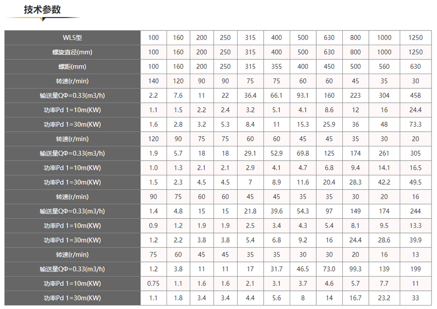 我公司無軸螺旋輸送機(jī)型號(hào)規(guī)格有:WLS200、WLS250、WLS300、WLS350、WLS400、WLS500。
