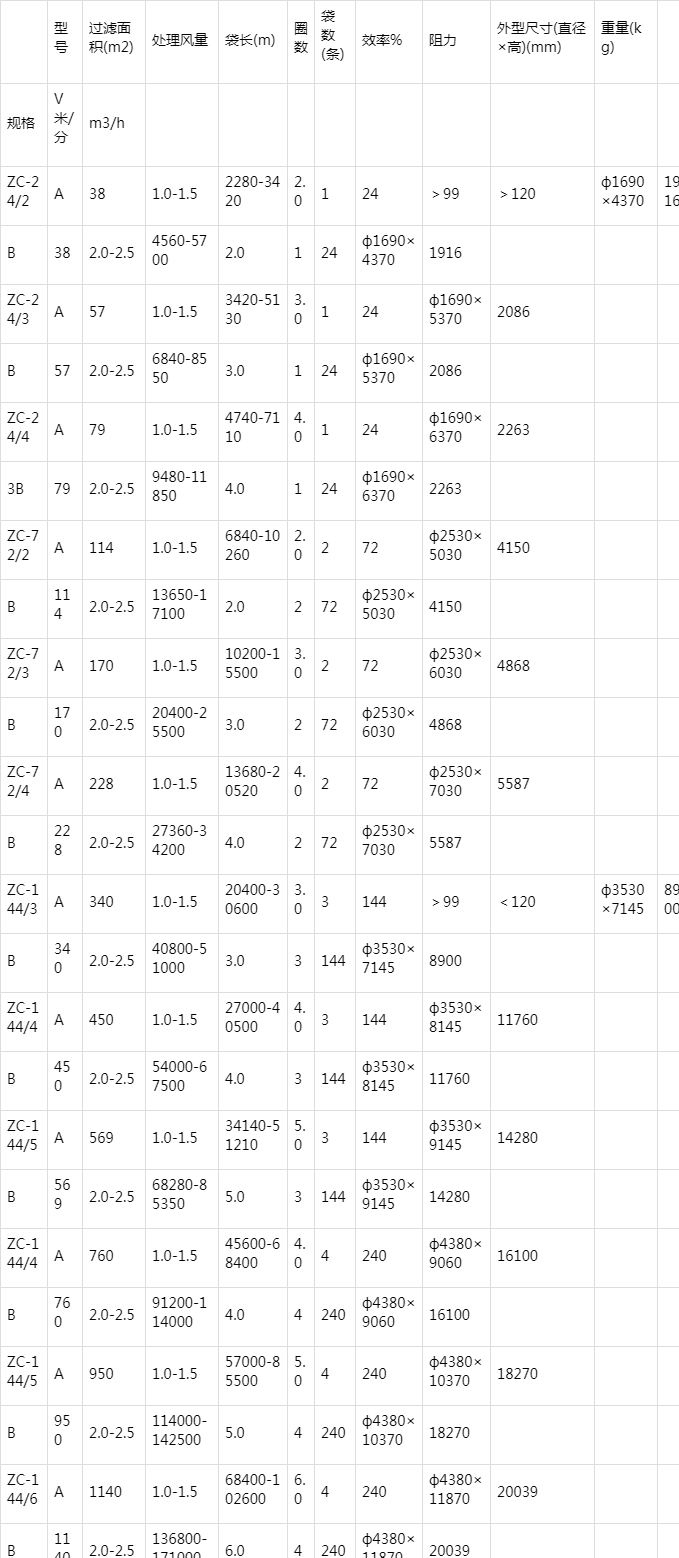 ZC型機械回轉(zhuǎn)反吹扁袋除塵器技術(shù)參數(shù)性能: