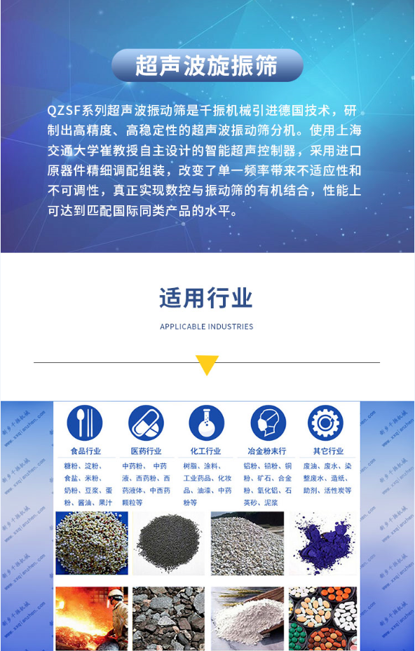 1.超聲波振動(dòng)篩實(shí)現(xiàn)高效篩分、高精度篩分,精度高達(dá)95%以上,產(chǎn)量可提高2-10倍。
