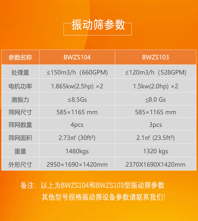 正道能源BWZS系列鉆井液振動(dòng)篩所型號(hào)規(guī)格齊全,包括:?jiǎn)螌幽酀{振動(dòng)篩,雙層泥漿振動(dòng)篩,多層泥漿振動(dòng)篩;雙聯(lián)泥漿振動(dòng)篩,三聯(lián)泥漿振動(dòng)篩,多聯(lián)泥漿振動(dòng)篩;低頻泥漿振動(dòng)篩,中頻泥漿振動(dòng)篩,高頻泥漿振動(dòng)篩、變頻泥漿振動(dòng)篩等,其中包括:BWZS104 BWZS103 BWZS70-3P BWZS85-2P等規(guī)格型號(hào)。具體鉆井液振動(dòng)篩參數(shù)規(guī)格參見(jiàn)下方技術(shù)參數(shù)表。