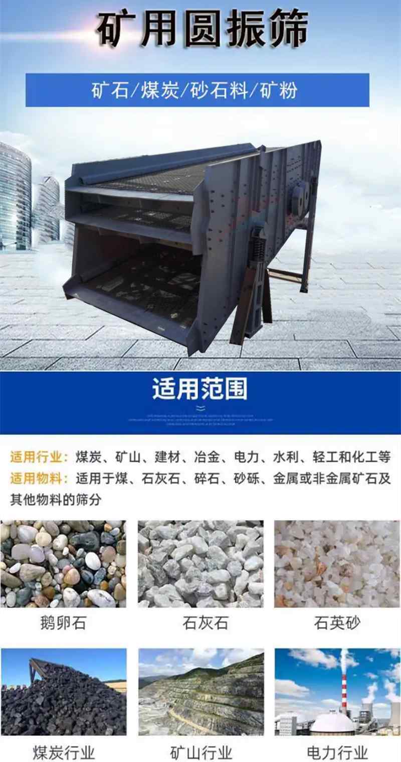 在礦山行業(yè)中,主要用于粗碎前的預(yù)篩分、中細(xì)碎過(guò)程中的分級(jí)、洗礦作業(yè)中的篩分以及尾礦處理中的篩分等,可對(duì)煤、石灰石、碎石、砂礫、金屬或非金屬礦石等各種物料進(jìn)行篩分。