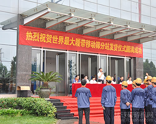 6月25日,世界最大的履帶移動(dòng)篩分站在鄭州市上街區(qū)試機(jī)發(fā)貨。河南黎明重工科技股份有限公司在其上街工業(yè)園為其新產(chǎn)品Y3S2560L型履帶移動(dòng)篩分站舉行了簡(jiǎn)單的發(fā)貨儀式。儀式現(xiàn)場(chǎng),工程師進(jìn)行了試機(jī)演示及講解,近千名黎明員工和數(shù)十家記者共同見(jiàn)證了這一神圣時(shí)刻。