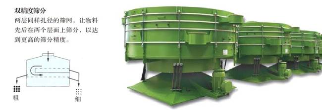 ★因此建立水平與拋擲三維翻滾運動。物料從中心到外緣在整個篩面上均勻分散,從而以螺旋運動往軸向傳播。細小顆粒從而完成了整個篩分過程。