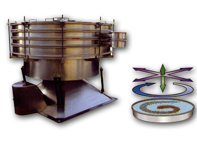 搖擺篩是一種仿人工搖動的低頻旋振篩,其原理是:瞬時運動為沿徑向的位移和以此位移為軸的圓周運動的合成(螺旋運動)。即可調節偏心距的激振器產生了非線性三維運動,物料也產生同樣的近似手動作業的運動,從而達到篩分之目的,再配合篩分附件可得到更加理想的篩分效果;適合于圓球狀、圓柱狀、片狀、乃至不規則形狀易堵網且需要精密篩分的物料。