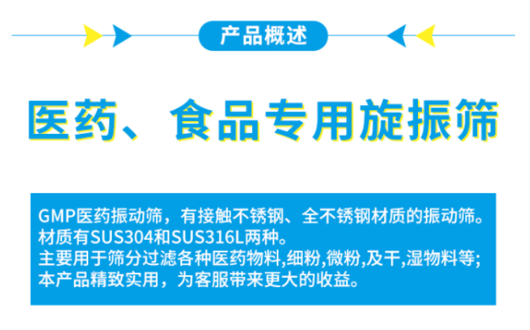 醫藥振動篩在醫藥行業中應用廣泛,并且也適用于其它行業小顆粒、粉末狀物料的篩分、分級、過濾工作。