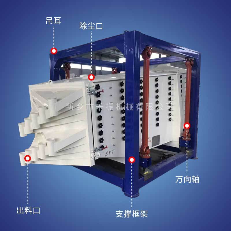 3.使用硅橡膠球、超聲波等高xiao清網裝置系統,篩孔不會堵塞。密閉除塵,操作安全;
