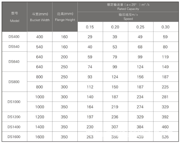 DS型鏈斗式輸送機利用牽引機構(滾子鏈條)帶動承載機構(鏈斗)通用頭尾鏈輪轉動達到向前輸送物料的作用。如果物料有溫度,在輸送過程中,還可以起到物料自然散熱的作用。