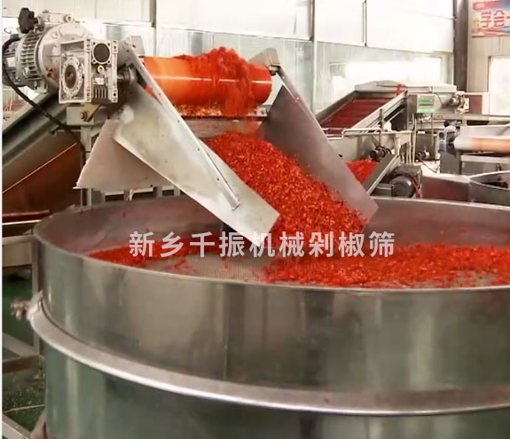 剁辣椒塊、剁辣椒碎篩分、分機、篩選用千振機械剁椒振動篩。食品級不銹鋼材質剁辣椒振動篩、不銹鋼材質剁辣椒旋振篩。