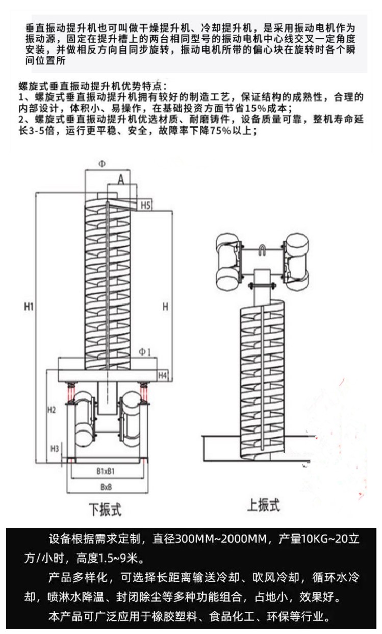 食品化工用直徑400304不銹鋼螺旋提升機 降溫振動冷卻盤 信息描述