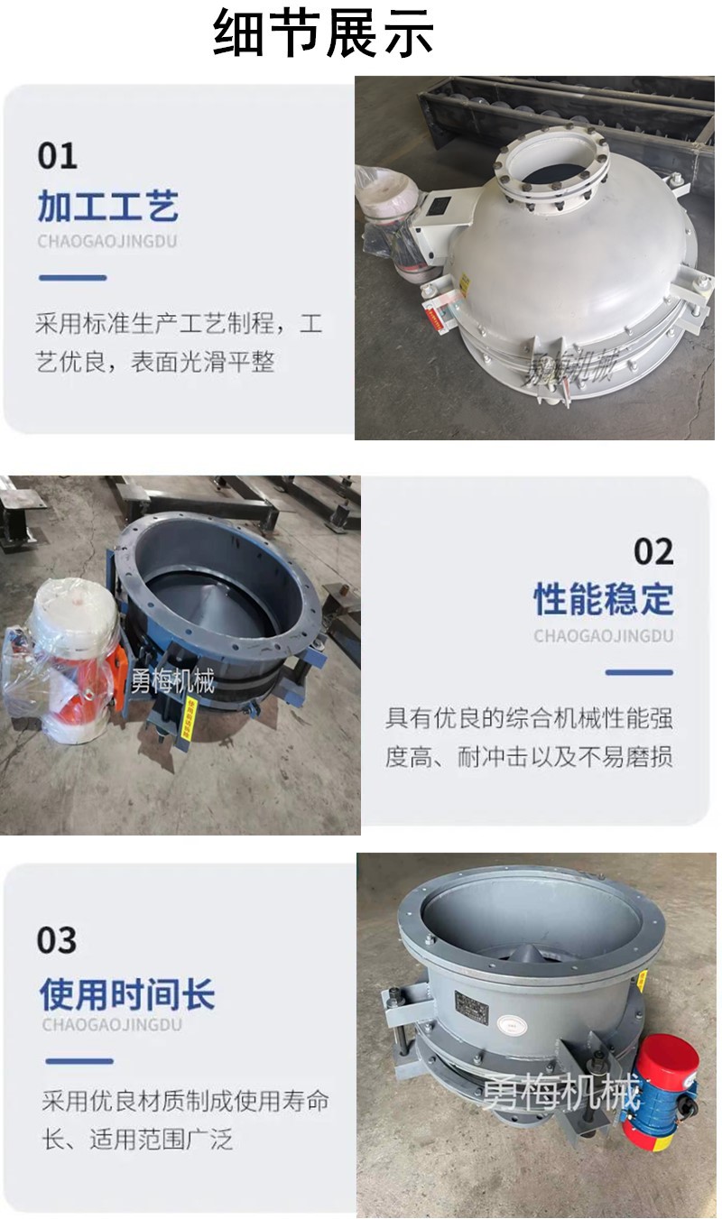 石灰料倉活化料斗 倉底卸料錐形下料器對于料倉的各種粉狀及粒狀物料都能實現破拱和連續均勻排料,采用優良材質制成使用壽命長適用范圍廣泛,給料連續、均勻、可定時定量無級調節,振動料斗(又稱活化料斗)是一種新型給料設備、安裝在各種料倉下部,通過振動使物料活化,能夠有效消除物料的起拱、堵塞和粘倉現象,解決料倉排料難的問題,起到破拱和均勻給料的作用。
