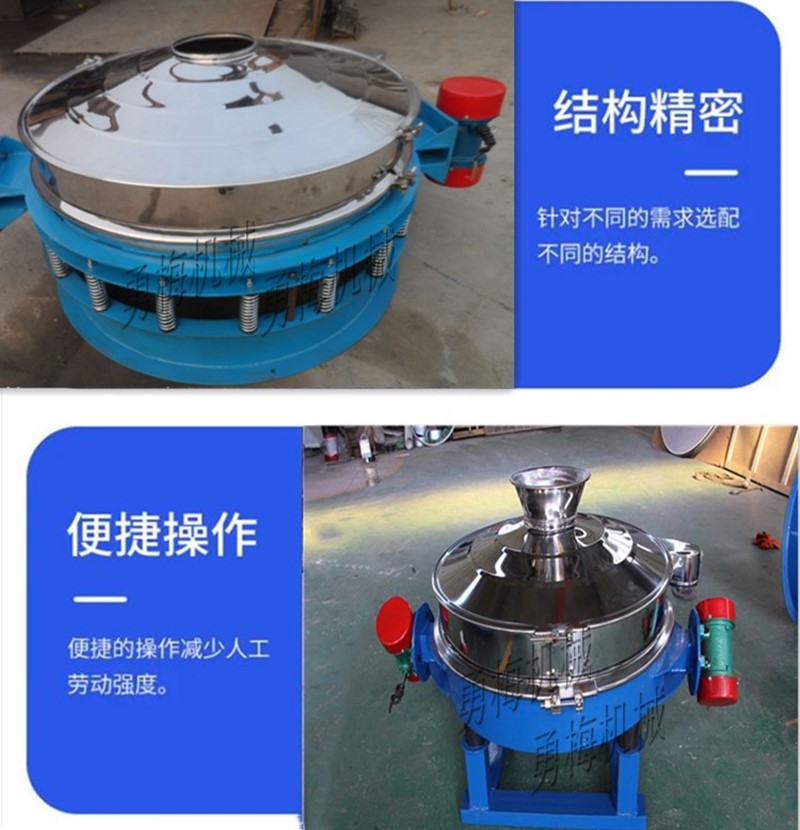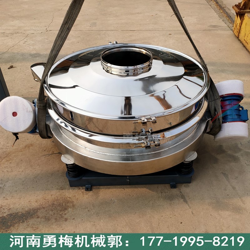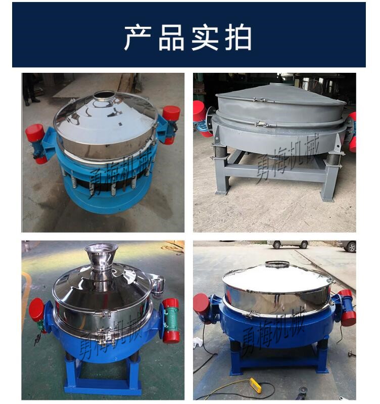 藕粉直排式篩分機 單雙電機直卸篩是將兩臺型號相同的振動電機對稱安裝在篩機兩側,振動電機上、下端裝有偏心重錘,在旋轉的過程中產生水平、垂直、傾斜的三次元運動,通過調整物料在篩面上的運動軌跡來達到篩分各種物料的目的。此外篩下物出料口采用直排篩式結構,提高了排料速度和排料量,適合物料除雜質等粗略篩分等工藝。過濾直排篩適用于任何粉、粒、液的篩分和過濾的行業。廣泛用于化肥、醫藥粉、涂料、顏料、化妝品、油脂、樹脂、陶瓷漿、粘土泥漿、生石灰、耐火材料粉末、冶金粉末、電磁粉末、研磨粉、果汁、飲料、食糖、食鹽、味精、調料、奶粉、淀粉、面粉、米粉、碳粉、石墨粉、猛粉、碳酸鋰、助溶劑、滅火劑以及環保行業的污水、廢水處理的工藝過程中的篩分、過濾。
