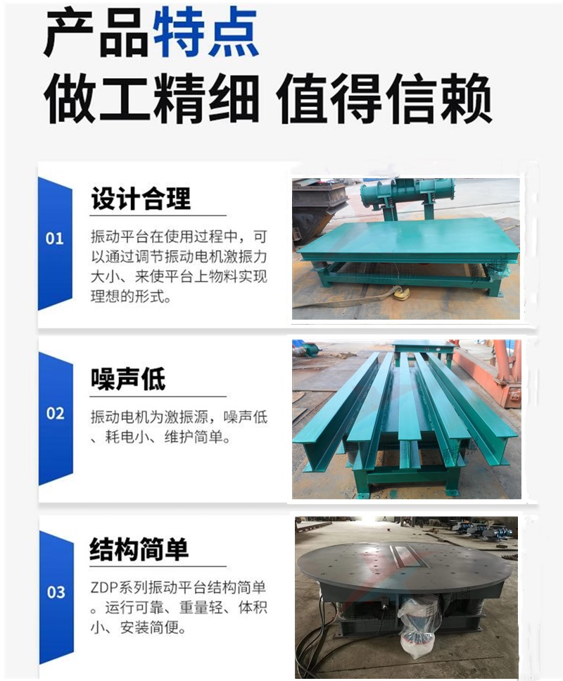 澆筑混凝土設備三維振動臺 耐火澆注料振動平臺在振動機構的帶動下做橫向縱向、上下等三維運動。振動平臺用于在生產流程中用于把顆粒、粉狀物料從散裝到塊狀形狀等形式的轉變。振動平臺又叫振實臺分為上下振動、螺旋振動和三維振動三種振動方式,通過強烈的震動把景觀磚、噸包、水泥、黃金、模具、混凝土預制件、水泥板地磚、樹脂砂、造型砂、粘土砂、覆膜砂、鑄造砂等震實成形。