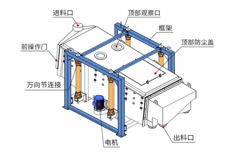 化工粉篩選機 石粉 耐火材料方形搖擺篩封閉型多層設計,高可以設計六層,設備的后端與前端快速推拉式裝網結構可快速更換每一層篩網,每層篩網均有篩網防堵清理裝置,篩分機在工作狀態下連續不停地對篩網進行清理保證篩網不堵孔,高效篩分,設備采用最新制作工藝整套螺栓、鉚釘連接,減少焊接應力,防止工件變形,連接強度高等優勢.