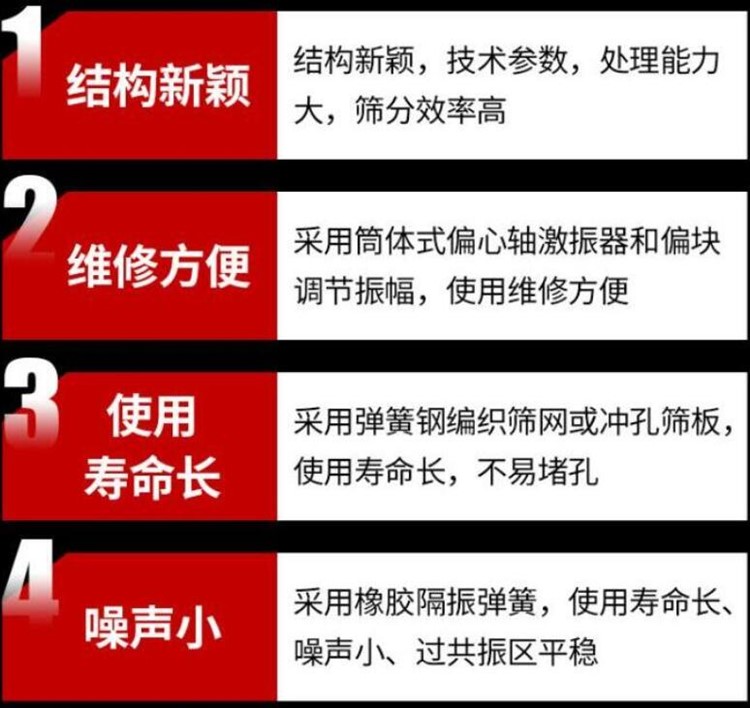工業振動篩選機直線震動篩機小型篩沙機可對 400 目內的物料進行有效篩分,篩分效率高達 96% 以上,雙電機驅動,激振力大,產量可達 20 噸 / 時,能夠滿足大規模生產的需求,直線振動篩利用振動電機激振作為振動動力來源。兩電機軸相對篩面在垂直方向有一傾角,在激振力和物料自重力的合力作用下,物料在篩面上被拋起跳躍或向前作直線運動,從而使不同粒度的物料通過相應孔徑的篩網,實現篩選和分級的目的.