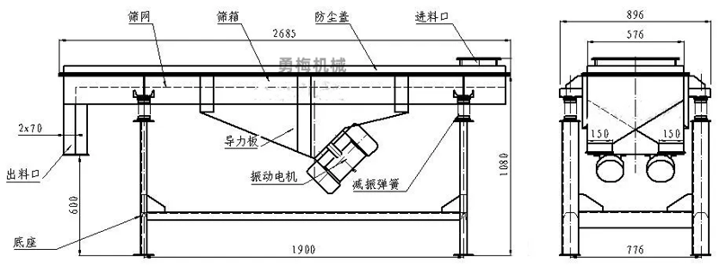 化工粉料DZSF1025直線振動篩 鋼球挑選機直線振動篩是由篩箱、框、振動電機、減振系統及座架等組成。它是用振動電機作為振動源,固定在篩箱上兩臺相同的振動電機做相反方向自同步旋轉,振動電機所帶的偏心塊在旋轉時各個瞬間位置所產生的離心力之分力沿拋擲方向作往復運動,使支承在減振器上的整個篩機做直線振動,使物料在面上被拋起的同時向前作直線運動,物料從入料端落入篩框后,迅速前進、松散透,完成分作業,以合理匹配端網達到分的目的。直線振動篩是一種具有國際先進水平的中小型多層篩分機械。適用于0.074-15mm的任何干式物料的篩分,**大給料粒度以不大于20mm為宜。直線振動篩是一種適合潮濕細粒級難篩物料干法篩分的篩機,篩機篩面有單層、雙層、多層結構形式,對各種顆粒狀和小塊狀散固體物料的干濕式分級,是目前國內處理難篩物料的振動篩分機械設備。