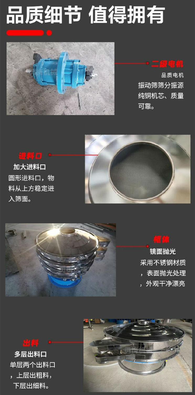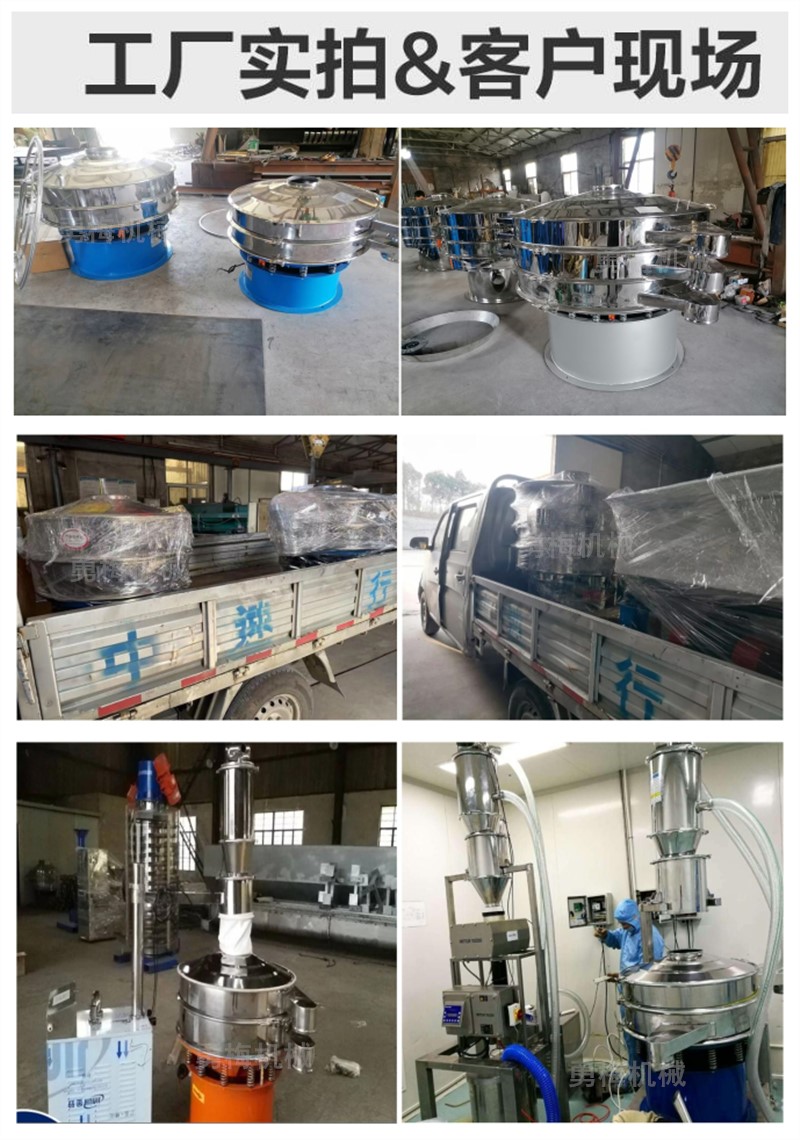 合金粉末篩粉機 涂料粉末旋振篩就是把顆粒、粉末分成大小不同的粒子段。單臺多層式振動篩分機可配1至5層篩網,能連續分選出2~6個粒級并控制較窄的粒度范圍。旋振篩通過立式激振電機驅動上下偏心重錘,將旋轉運動轉化為水平、垂直、傾斜的三次元復合振動,使物料在篩面形成外擴漸開線軌跡。通過調節上下重錘相位角可改變物料運動軌跡,實現精篩分或概率篩分 。全封閉防塵結構、子母式快拆網架設計(換網時間3-5分鐘)以及不銹鋼/碳鋼材質配置,使其適配食品、醫藥等高潔凈度場景。設備提供XZ400至XZ2000共8種規格,支持1-5層篩網配置,出料口方向可360°調節。