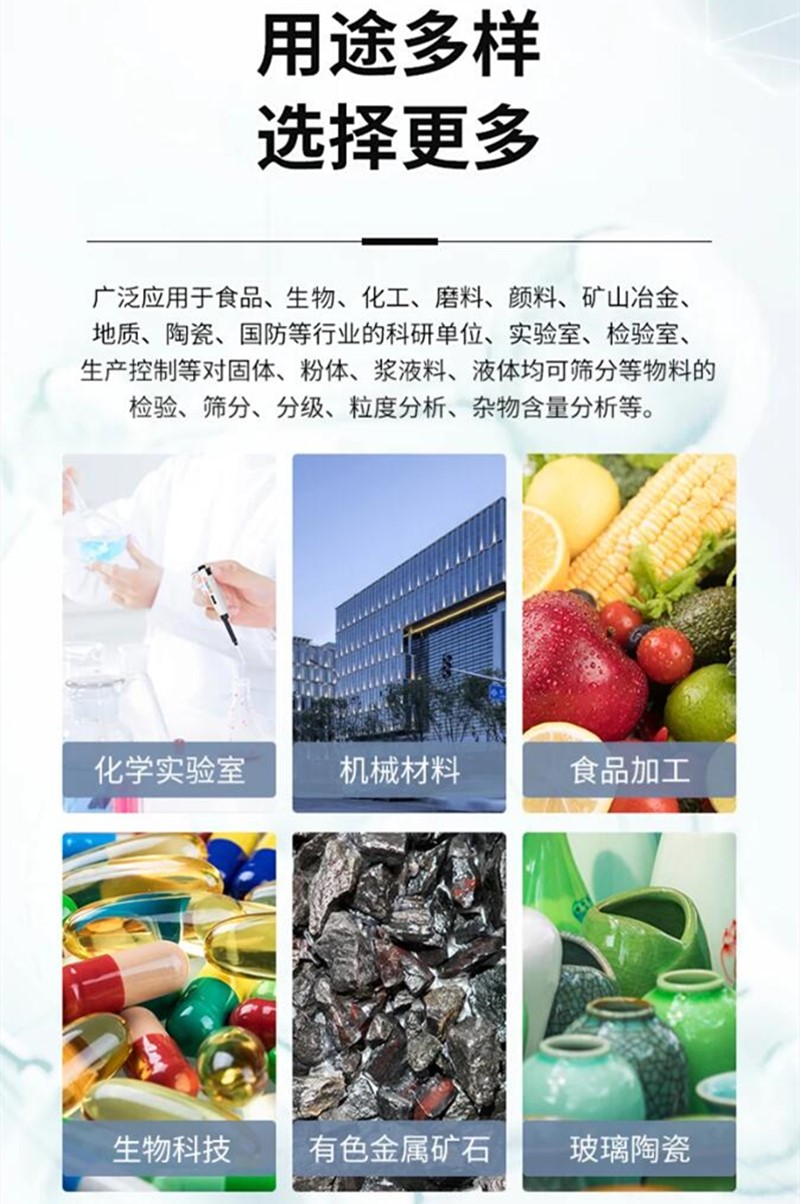 白剛玉粒度砂標準電動拍擊篩 敲打拍擊篩可篩分多種特性物料的產品。適用于普通磨料粒度組成檢查和超硬材料生產分級及粒度組成檢查,廣泛用于地質、冶金、粉體、化工、建工水泥、醫藥、國防等部門科研生產實驗室,對物料進行篩分檢測。