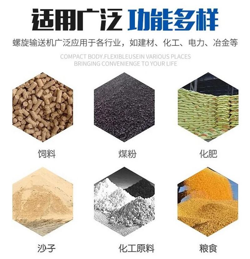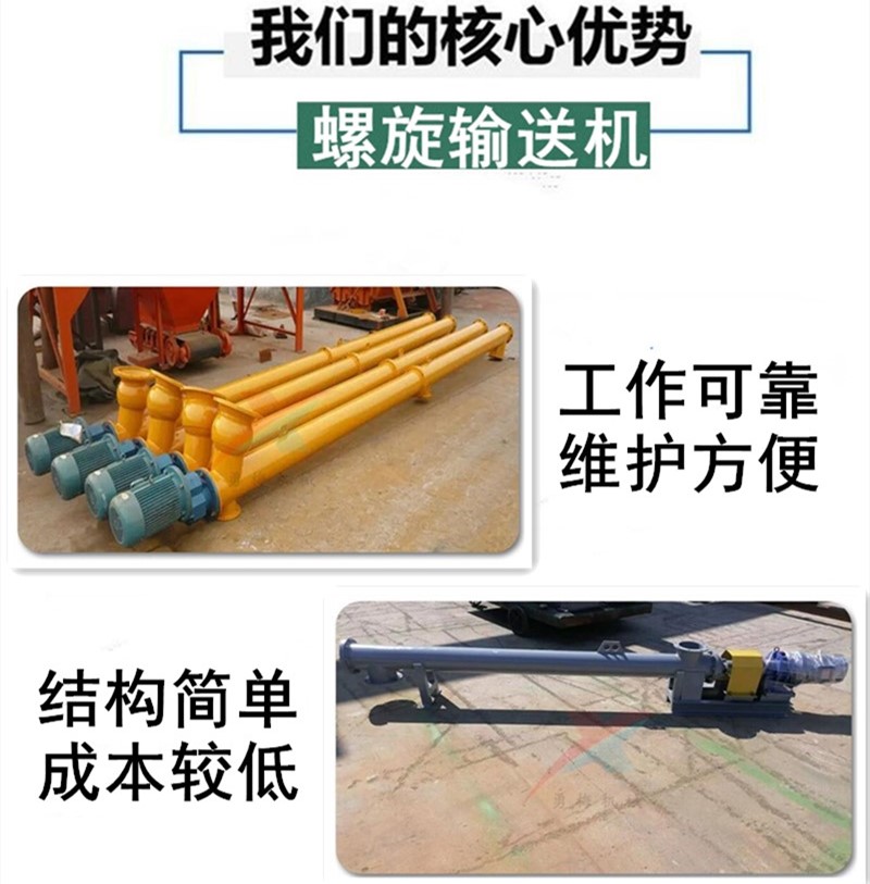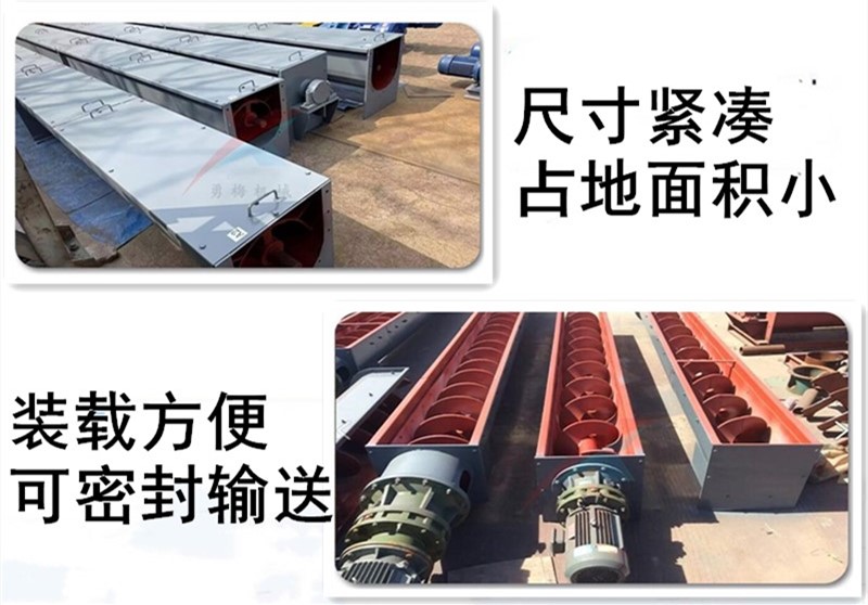 螺旋輸送機體積小,重量輕,安裝方便操作簡單,不需潤滑,維修方便,調節方便,螺旋輸送機是一種利用電機帶動螺旋回轉,推移物料以實現輸送目的的機械。它能水平、傾斜或垂直輸送,螺旋輸送機旋轉軸上焊的螺旋葉片,葉片的面型根據輸送物料的不同有實體面型、帶式面型、葉片面型等型式。螺旋輸送機的螺旋軸在物料運動方向的終端有止推軸承以隨物料給螺旋的軸向反力,在機長較長時,應加中間吊掛軸承。