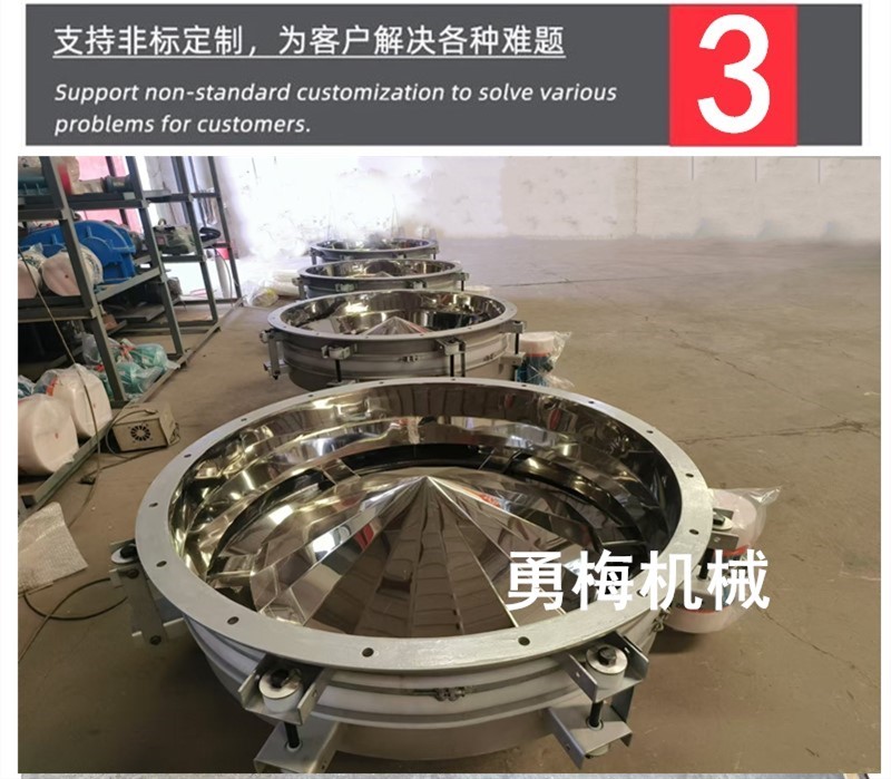 氧化鋁下料不銹鋼鏡面振動料斗 物料活化漏斗可兼具破拱、給料、截流與調流功能,通過振動電機或電磁鐵產生激振力促使物料活化,實現連續均勻排料,振動料斗振幅可通過調節電壓、偏心塊夾角或變頻調速實現,排料量控制精度可達±5% [3] [6]。常見類型包括圓盤式與直槽式,適配圓形、方形及混凝土料倉,密封設計可避免粉塵外揚 。運行中需關注噪音異?;蚵┝蠁栴},可通過檢查螺栓緊固度、密封件狀態及調整激振力進行修復。