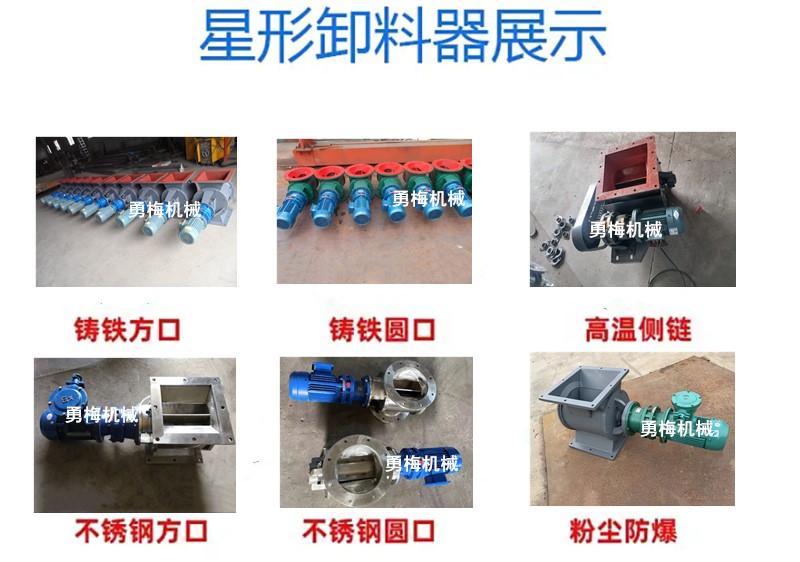 YCD-HX-6型卸料器  剛性葉輪旋轉定量下料器采用行星轉動原理,輸入輸出同軸設計并與電機直聯,結構緊湊、體積小、重量輕。其運轉可靠平穩,噪音低,故障少,壽命長,密封性能良好,可防止粉塵外泄。耐壓型采用封閉轉子結構,適用于正負壓輸送系統,兼具鎖氣功能,能保證管道壓力穩定。設備具備過載能力強、耐沖擊、慣性力矩小等特點,支持頻繁啟動及正反轉運行。