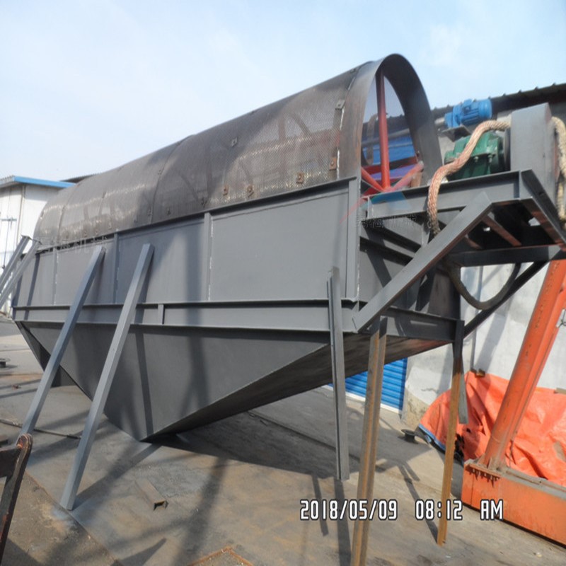 花生去土滾筒篩 圓筒式滾動篩是通過對顆粒粒徑大小來控制垃圾分選的,分選精度高。滾筒篩的筒體一般分幾段,可視具體情況而定,篩孔由小到大排列,每一段上的篩孔孔徑相同。