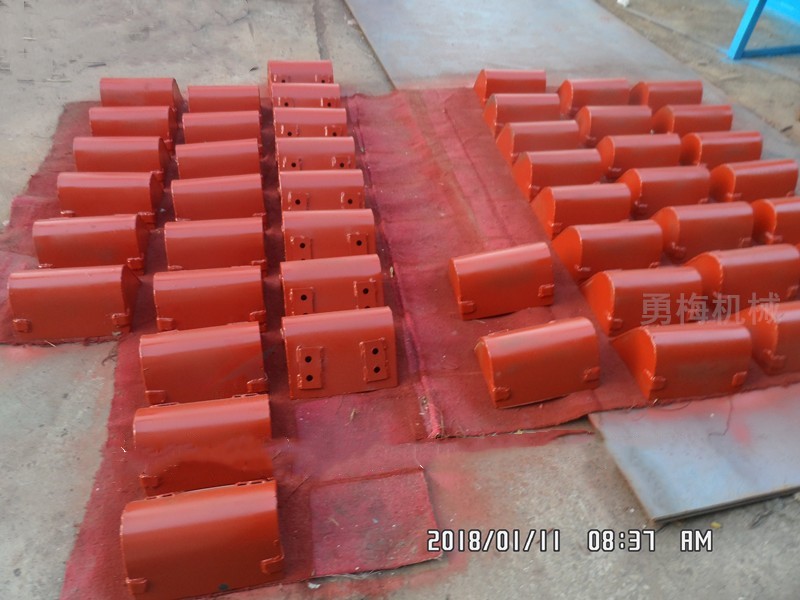 NE斗式提升機料斗 鋼制畚斗固定在牽引構件上,隨著牽引構件的運動而循環上升,將物料從提升機的底部提升到頂部,實現物料的垂直或傾斜提升。當料斗到達提升機頂部的出料口時,利用離心力、重力或兩者結合的方式將物料卸出。離心式卸料適用于流動性好、顆粒較小的物料,重力式卸料適用于塊狀、比重較大的物料,混合式卸料則適用于多種物料的卸料需求。
