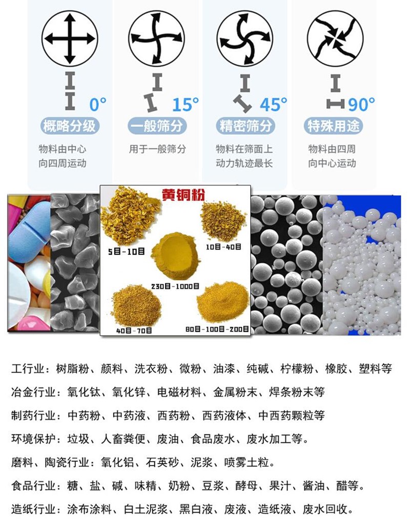 三氯化鋁振動篩 超細微粉外置式超聲波振動篩是在在傳統的振動篩基礎上再篩網上引入一個低振幅、高頻率的超聲波振動波(機械波)在篩網上面疊加一個高頻率低振幅的超聲振動儀,超微細粉體接受巨大的超聲加速度,使篩面上的物料始終保持懸浮狀態,從而抑制粘附、摩擦、平降、等堵網因素。解決了強吸附性、易團聚、高靜電、高精細、高密度、輕比重等篩分難題,使超細微粉篩分不再難事,特別適合高品質、精細粉體的用戶使用。