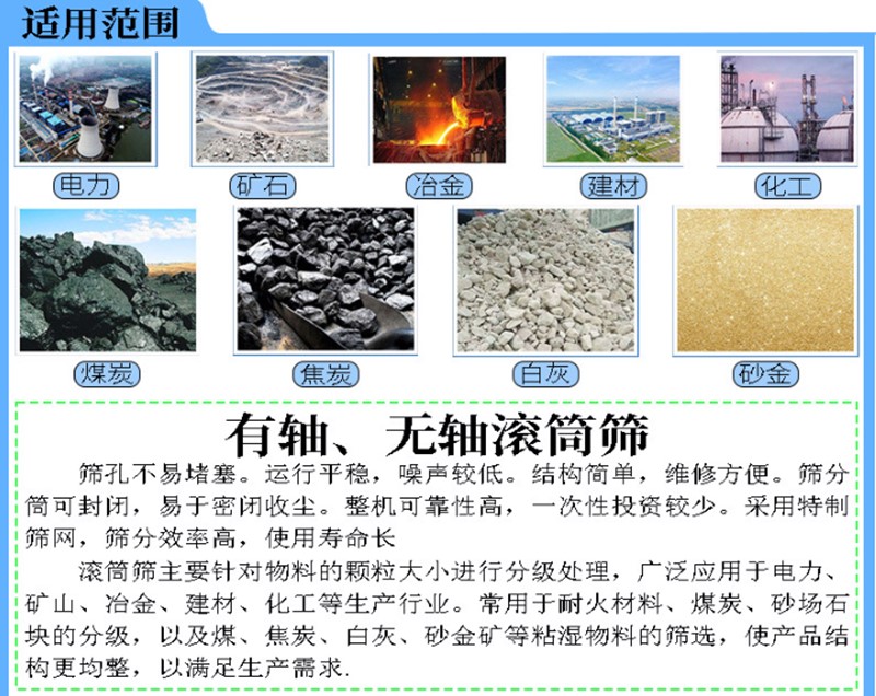 鋸末篩選機藥材六角篩 無軸滾筒篩主要針對物料的顆粒大小進行分級處理,廣泛應用于電力礦山冶金、建材,化工等生產行業。常用于耐火材料,煤炭,砂場石塊的分級,以及煤,焦炭,白灰,砂金礦等粘濕物料的篩選,使產品結構更勻整,以滿足生產需要。