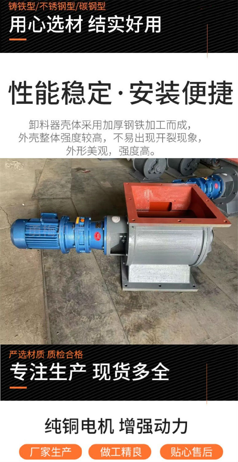 不銹鋼星型卸料器 旋轉鎖風閥加工精度高,內部軸承不會產生縱向壓力,17719958219 確保產品噪音低,無振動使用壽命長。耐磨損封閉型轉子葉輪該型星型卸料器特點是移子葉片的端部帶用特殊耐磨材料制成。能保證葉片端部與殼內壁有良好接觸,并且磨損后可方便地調節葉片端部,使其仍然與殼體內部操持良好接觸具有更好的鎖氣性能。