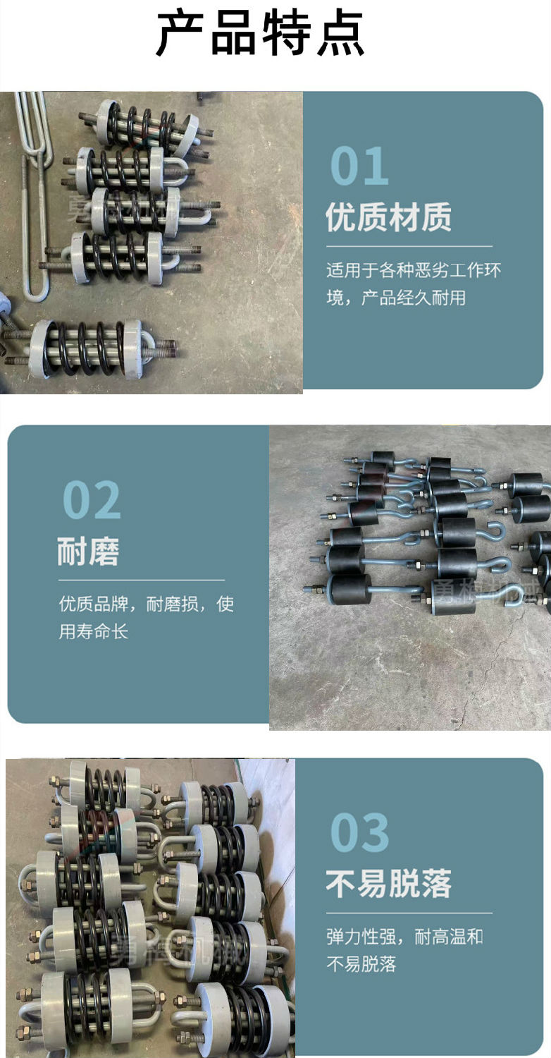 鋼制彈簧吊掛掛簧 鋼簧吊掛 的核心優勢是低頻減振強、環境適應性好、17719958219 壽命長,適合長期、重載、惡劣環境下的穩定減振,鋼簧吊掛是一種采用鋼性彈簧和加強鋼架及阻尼材料組裝而成的吊裝式除振降噪元件。具有阻尼比大、自振頻率大、吊鉤耐拉不易變形斷裂、使用壽命長等特點。