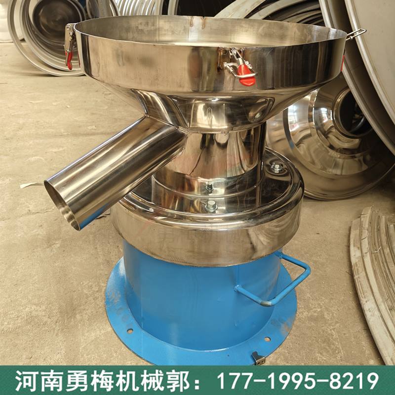 早餐店用小型振動篩 450型豆漿過濾篩加緣與廣口兩種設計,17719958219 防止漿液飛濺,大觀察口易于觀察篩面,操作簡單維護方便。網孔不變形,換網快,篩網使用壽命長,部件無死角易清洗消毒。能把各類漿液中的非容性固體物質迅速清理,漿渣自動排出,可連續作業。小機型高效率,產品接觸部分均為不銹鋼,沒有機械作用。維護成本非常低,清洗和更換篩網簡單便利:另有移動式設計,靈活更方便。